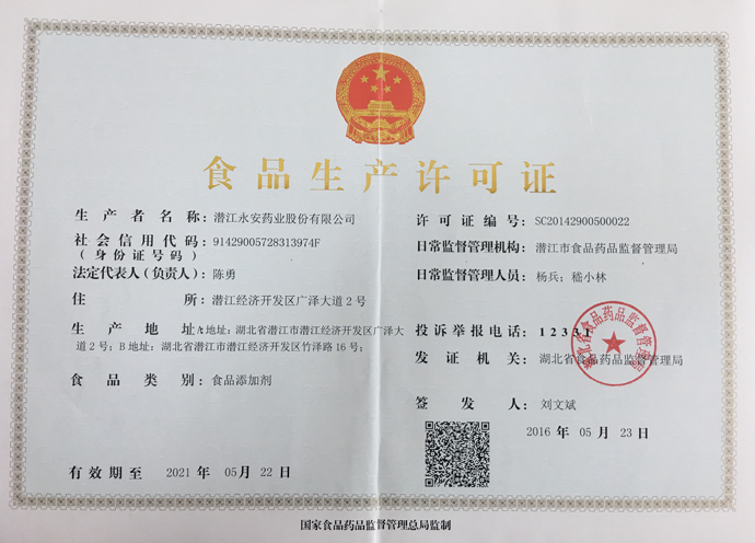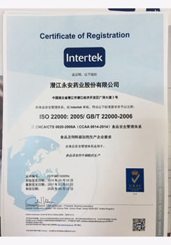 潛江永安藥業(yè)股份有限公司成立于2001年,坐落于江漢平原腹地潛江市國家高新技術產業(yè)開發(fā)區,占地500余畝,注冊資金貳億玖仟肆佰陸拾捌萬貳仟伍佰元整,是一家擁有自主知識產權的國家高新技術企業(yè)。公司股票于2010年3 月5日在深圳證券交易所掛牌上市(股票代碼為002365)。公司具有雄厚的技術開發(fā)能力,是湖北省創(chuàng)新型企業(yè)和湖北省知識產權建設示范企業(yè)。公司研發(fā)平臺分別被認定為省級企業(yè)技術中心和湖北省功能性食品添加劑工程技術研究中心。 經過多年的發(fā)展,公司形成了以食品及藥品添加劑牛磺